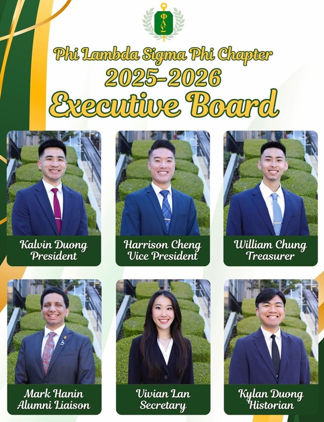 The Phi Chapter is represented by the top leaders of the USC Mann School of Pharmacy. Membership is exclusive, and deservingly so, because it reflects the quality of students selected. However, in no way is Phi Lambda Sigma an “officer’s club.” Membership, although exclusive, is not out of reach. Members are chosen into this society, not based on the number of positions held, but on one’s initiative and performance as a leader in all facets of pharmacy. These include, but are not limited to, involvement in professional organizations, committees, organizational activities, and school activities, as well as leadership positions related to pharmacy. The initiation and success of new ideas and activities is highly regarded, since simply holding a position is not necessarily synonymous with being a leader. The ability to work well and communicate with others on a professional basis is fundamental. This support from your colleagues is of utmost importance in order for good ideas to be transformed into actions. We encourage you to become and remain involved in the multitude of organizations on campus. Further, we encourage you to initiate change and push the profession to new heights. If you would like more information, or if you have any questions regarding the society, please do not hesitate to contact us.
